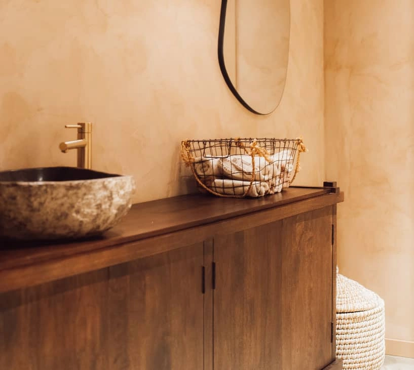 Les lignes courbes structurent les espaces et apportent de la fluidité dans les circulations. Elles permettent de casser les angles, d’adoucir les volumes et de créer une ambiance enveloppante. Les matières naturelles – bois, enduits texturés, pierre – renforcent cette sensation de calme et d’intimité.